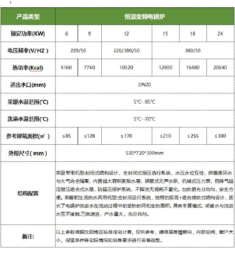 遠(yuǎn)鵬恒溫變頻電采暖爐,加熱系統(tǒng)根據(jù)用戶設(shè)定的溫度自動調(diào)節(jié)輸出功率(1%--100%),采暖水溫設(shè)定范圍5-85度,電壓變化時電功率恒定,全天恒溫運行,滿足高標(biāo)準(zhǔn)高品質(zhì)采暖需求。